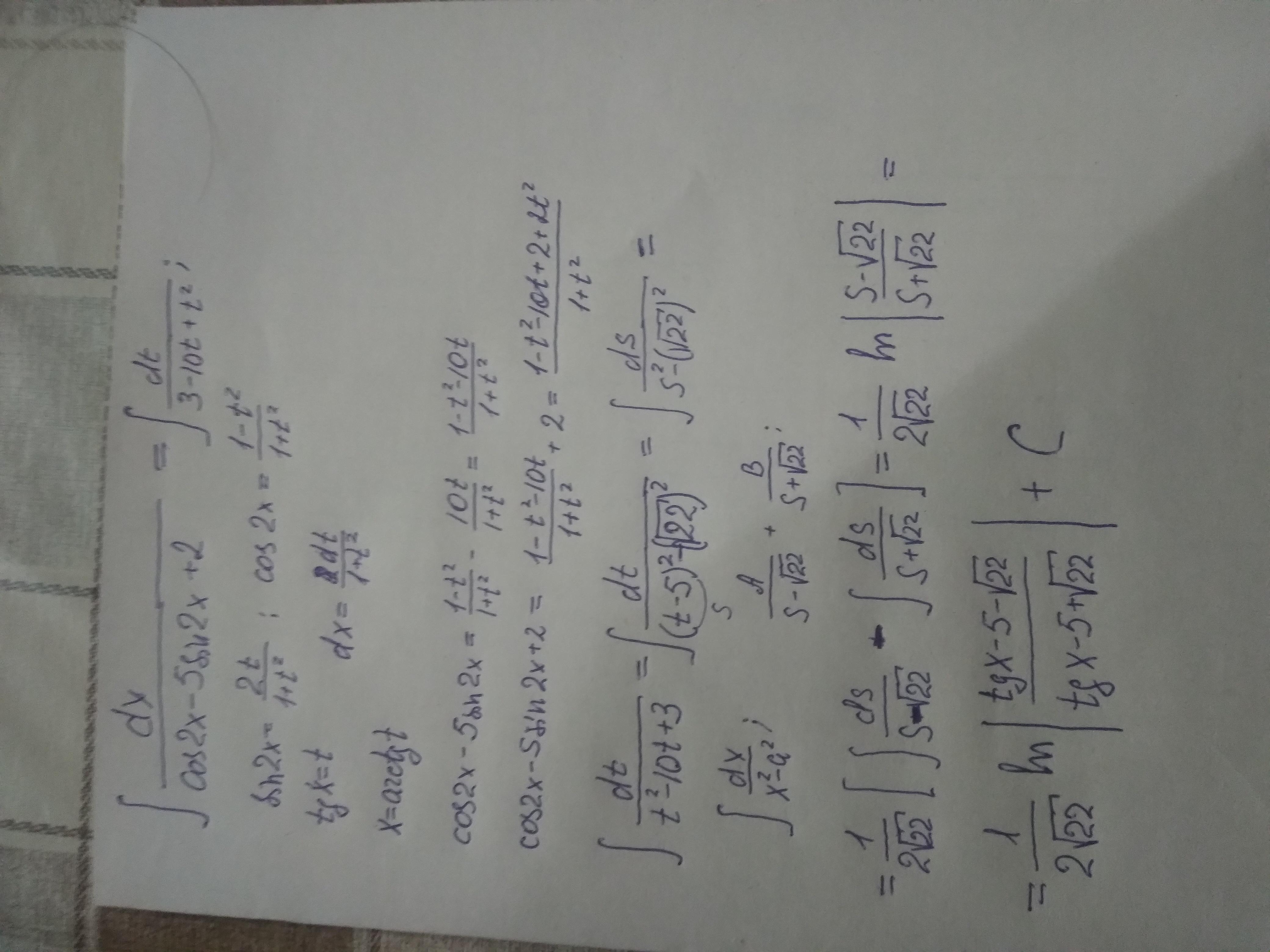Применяем универсальную тригонометрическую подстановку . В подынтегральной функции содержатся sin2x и cos2x, тогда тангенс половинного угла будет tgх .