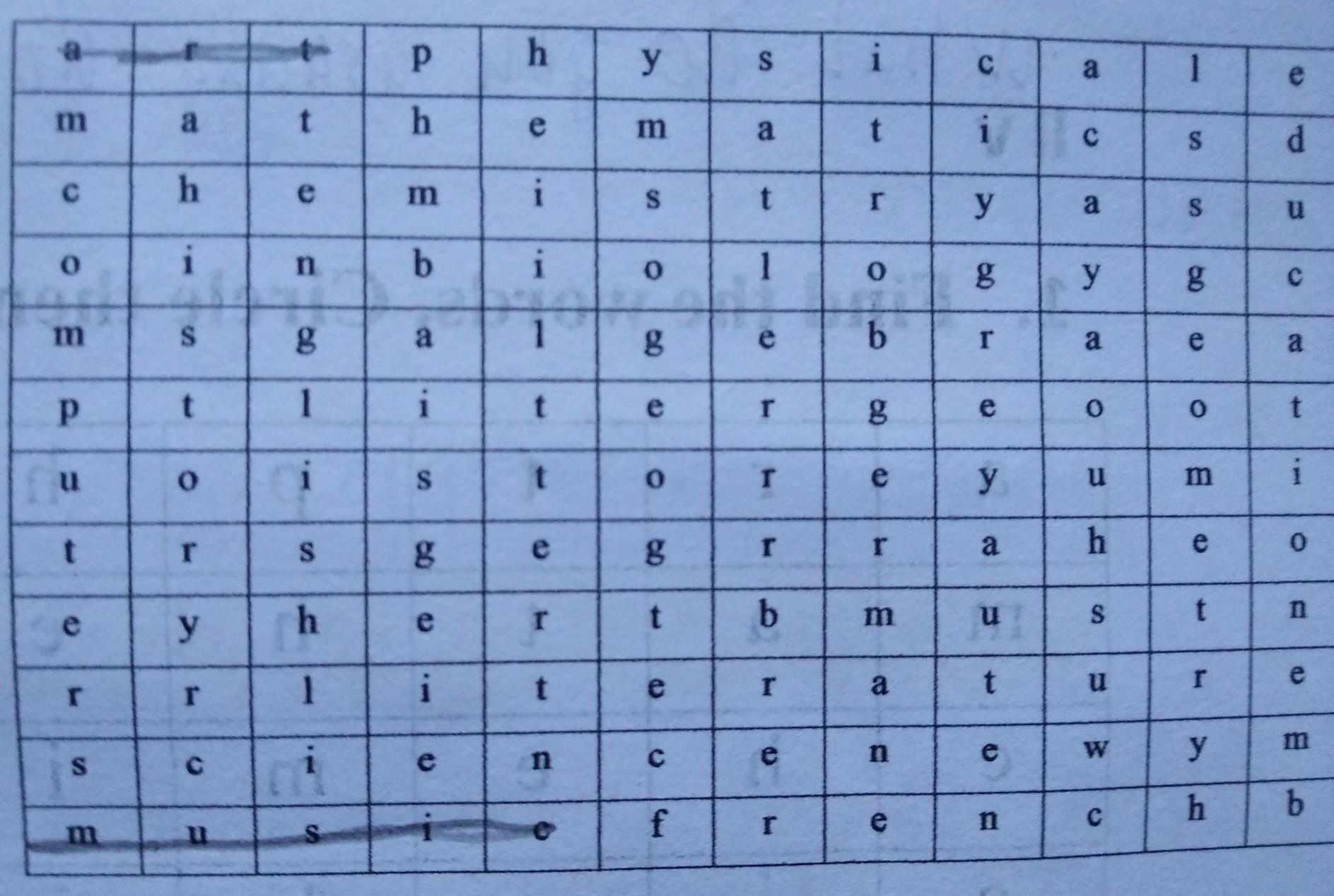 1 computers, 2 literature, 3 chemistry, це усі слова які я знайшла