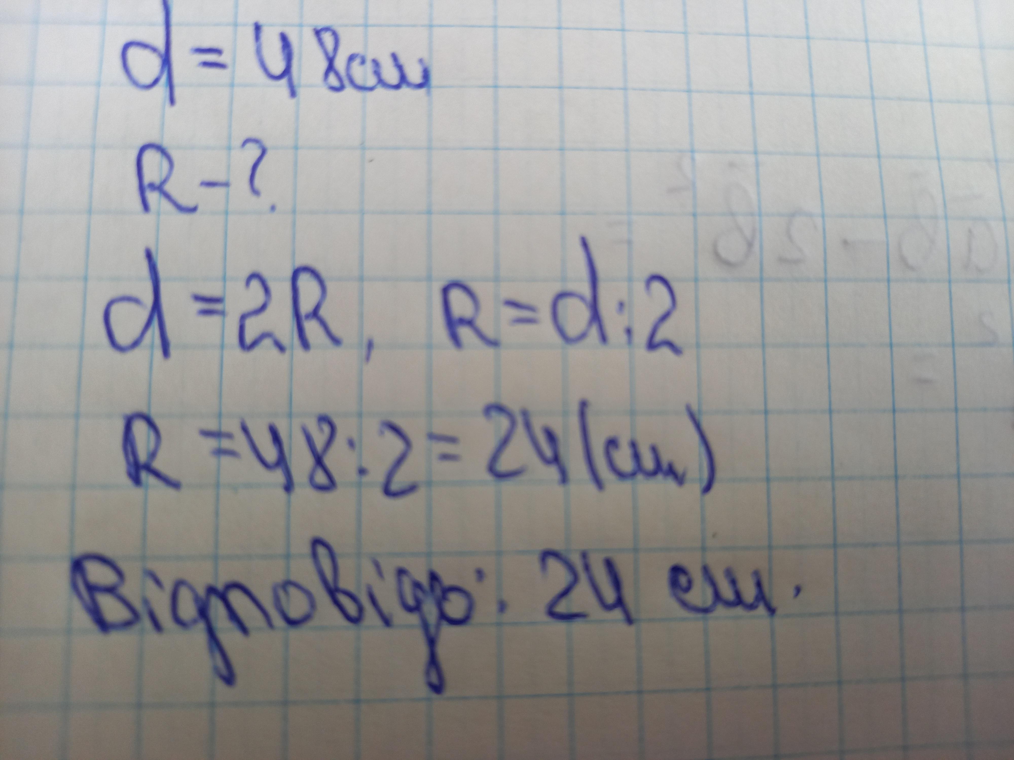 Получается, если у нас диаметр равен 48 см., то нам нужно просто разделить 48 см. на 2.