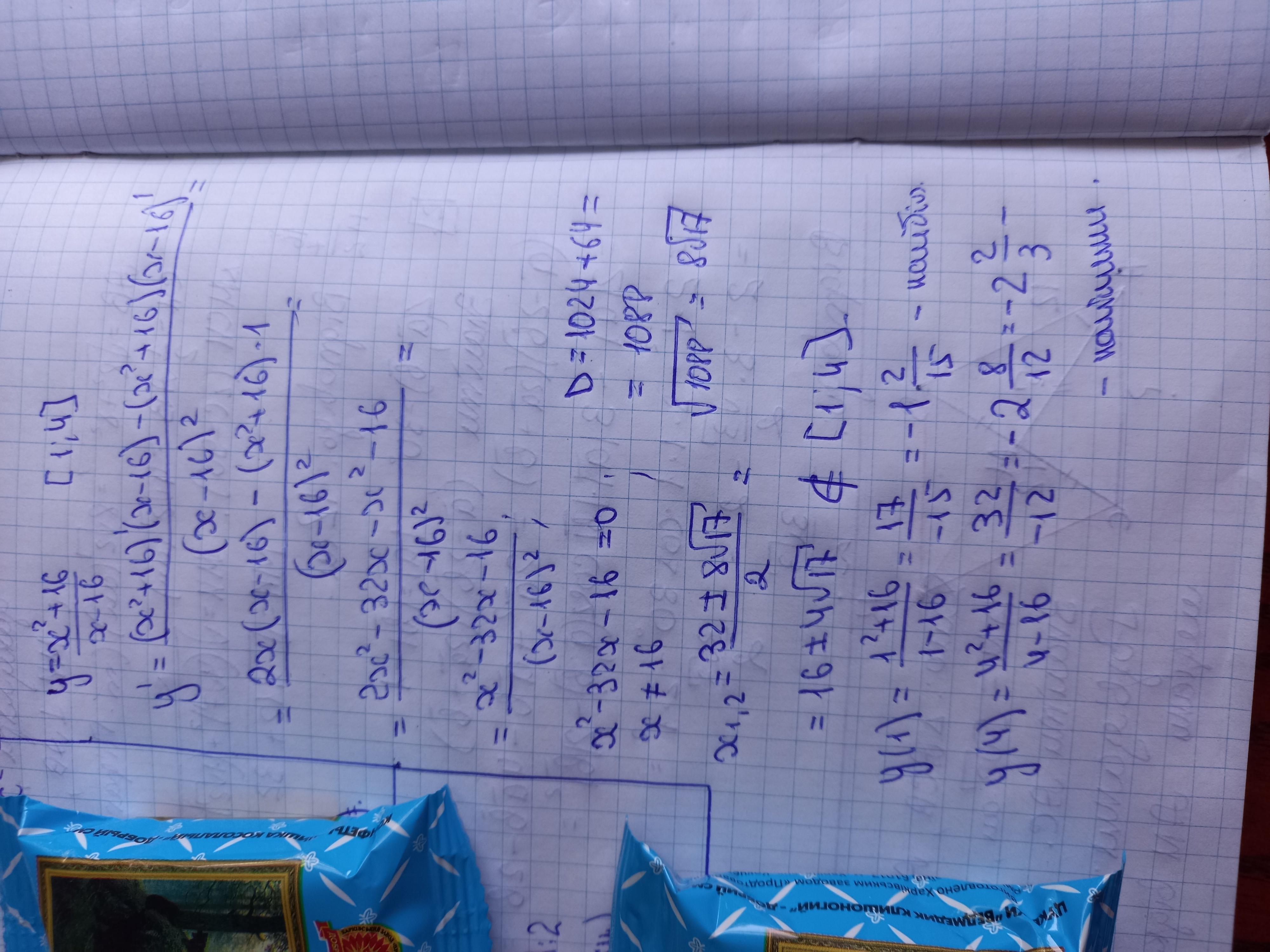 y= x^2 + 16/x - 16 на відрізку [1;4];