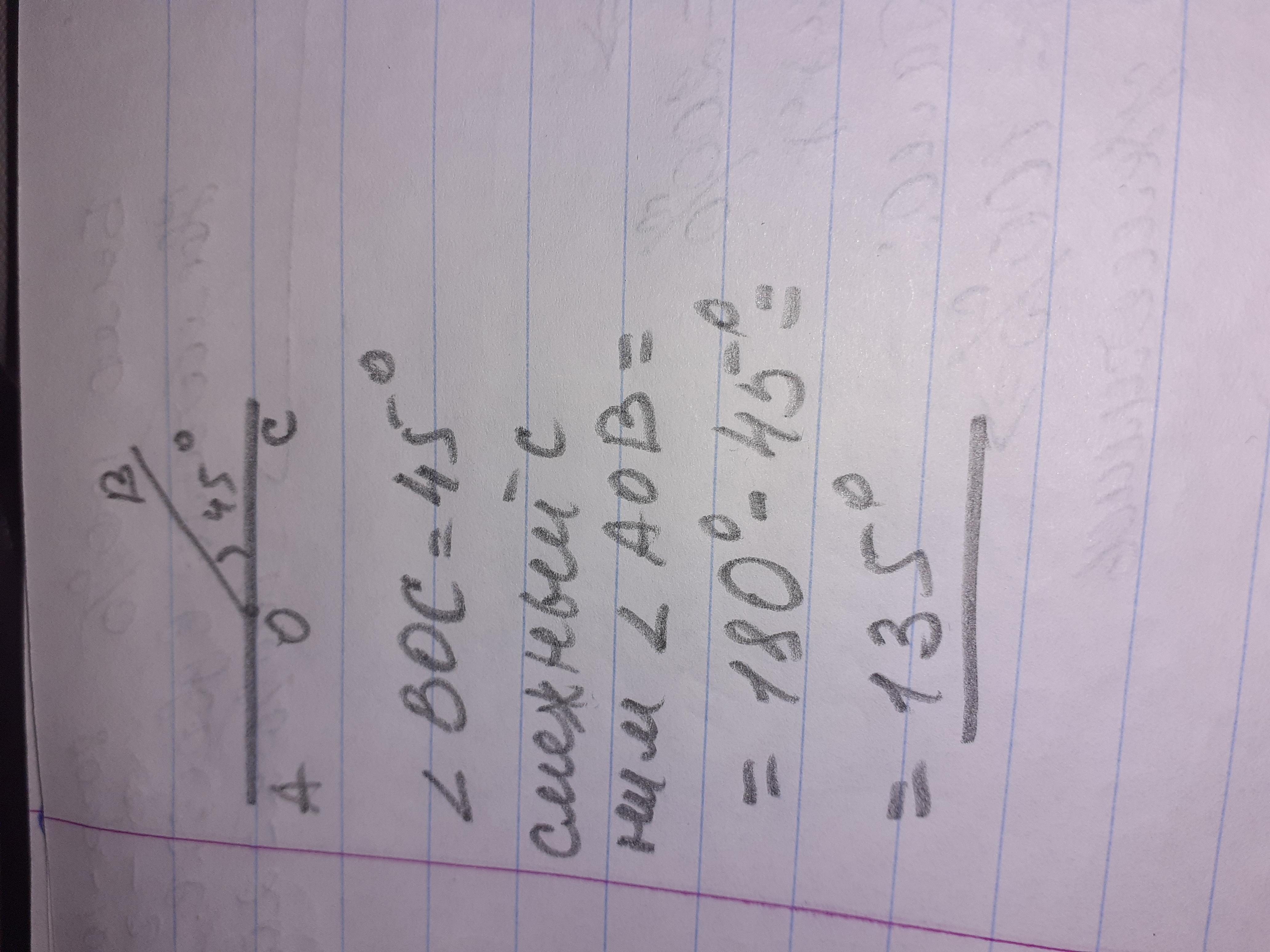∠АОВ=180°-∠ВОС=180°-45°=135°, ведь они сумежные