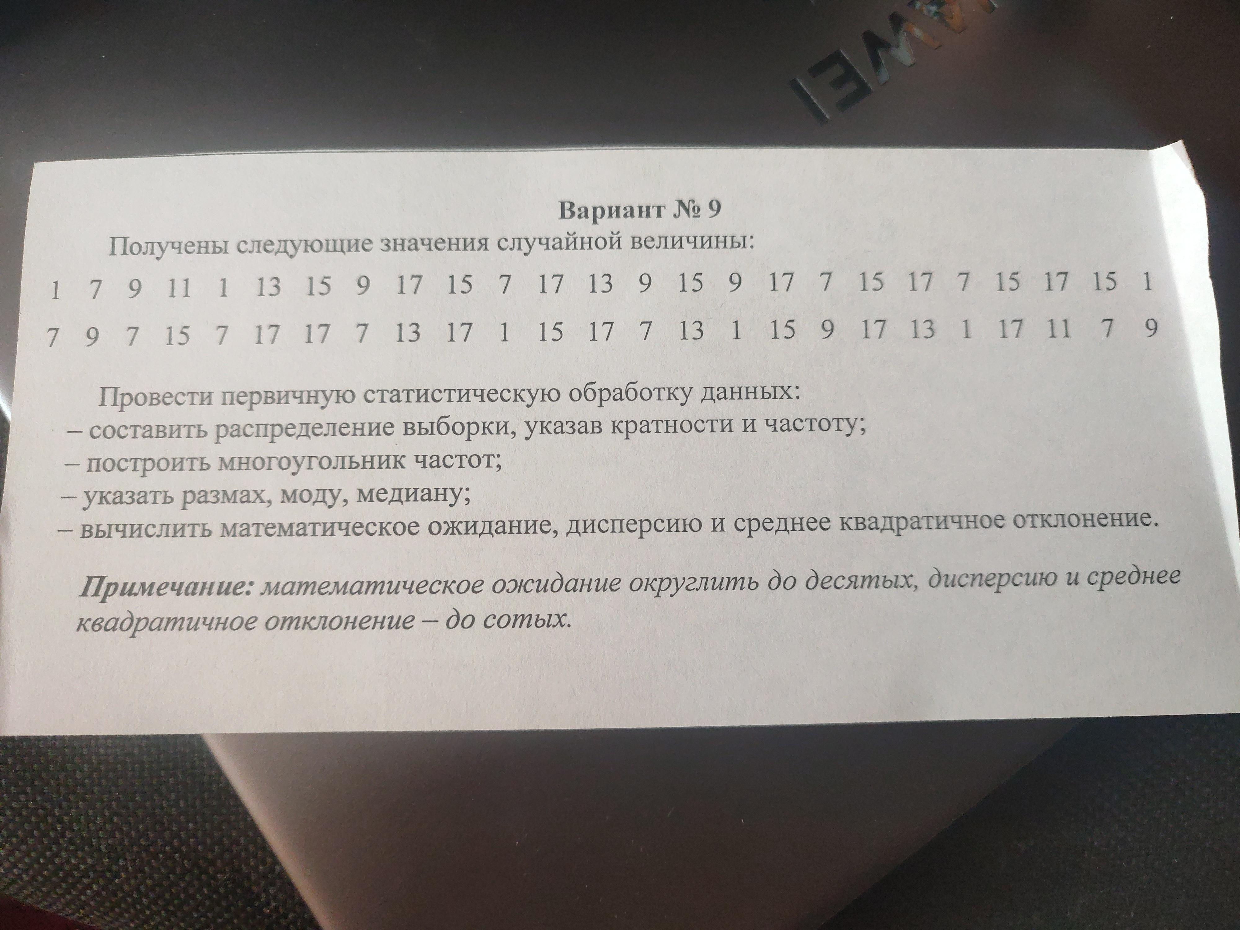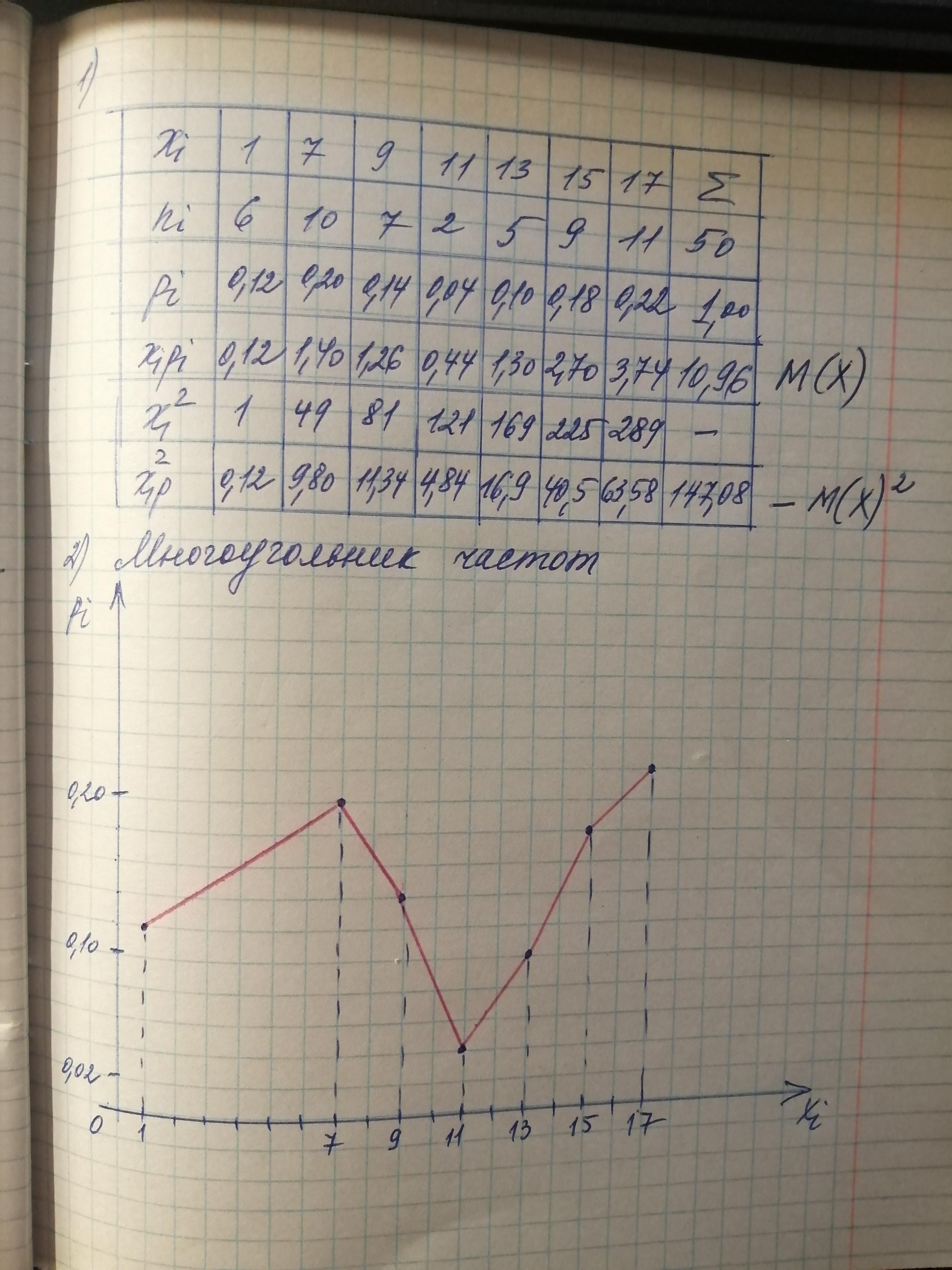 М(Х) = ∑x(i)*p(i) = 10,96 ≈ 11