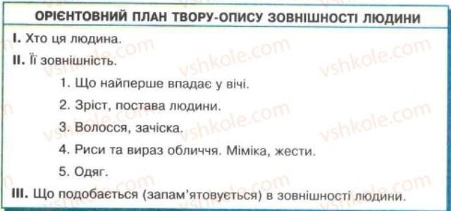 Скласти твір-опис зовнішності людини за орієнтовним планом, обравши одного з персонажів:
