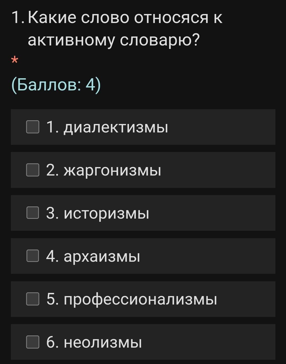 Пассивный словарь - историзмы, архаизмы и неолизмы, активный - все остальное