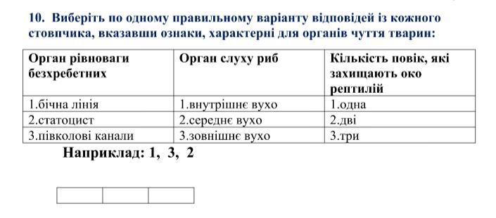 стовпчика, вказавши ознаки, характерні для органів чуття тварин