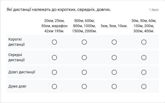 1-Дуже довгі; 2-середні дистанції; 3-довгі дистанції; 4-короткі.