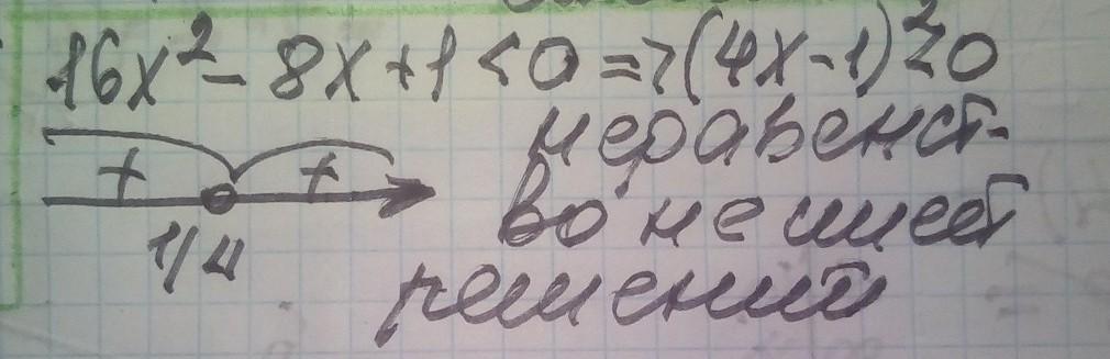 Так как (4х - 1)² ≥ 0 при всех значениях х, то неравенство