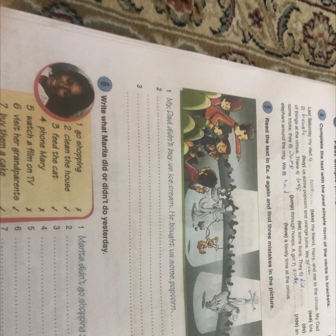 В упражнении 4 исправьте was на were в 4-м предложении ( lions-множественное число); в 6-м предложении к слову jump допиши -ed: jumped.