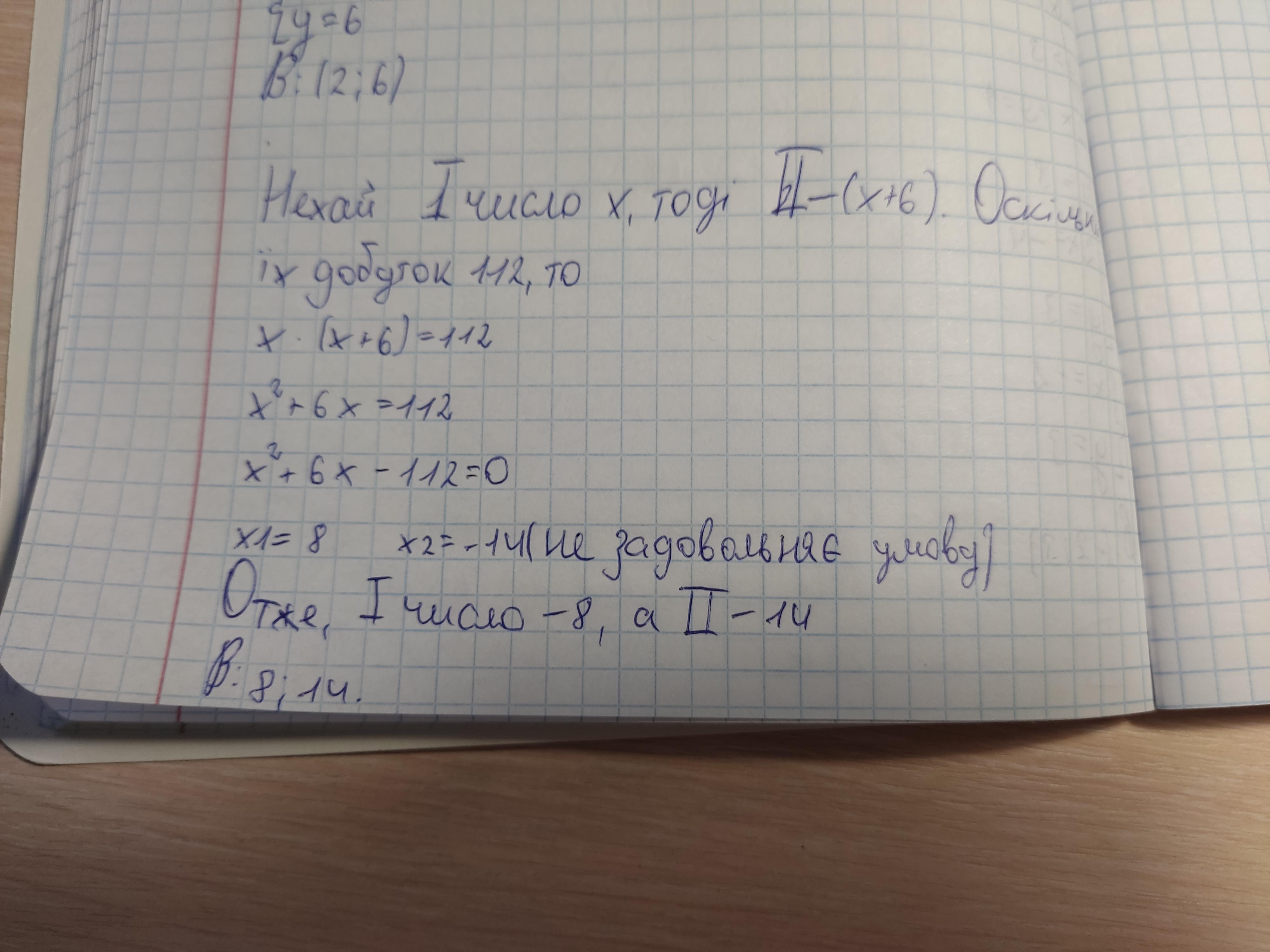 одне з двох натуральних чисел більше за інше на 6 знайдіть ці числа, якщо їх добуток дорівнює 112