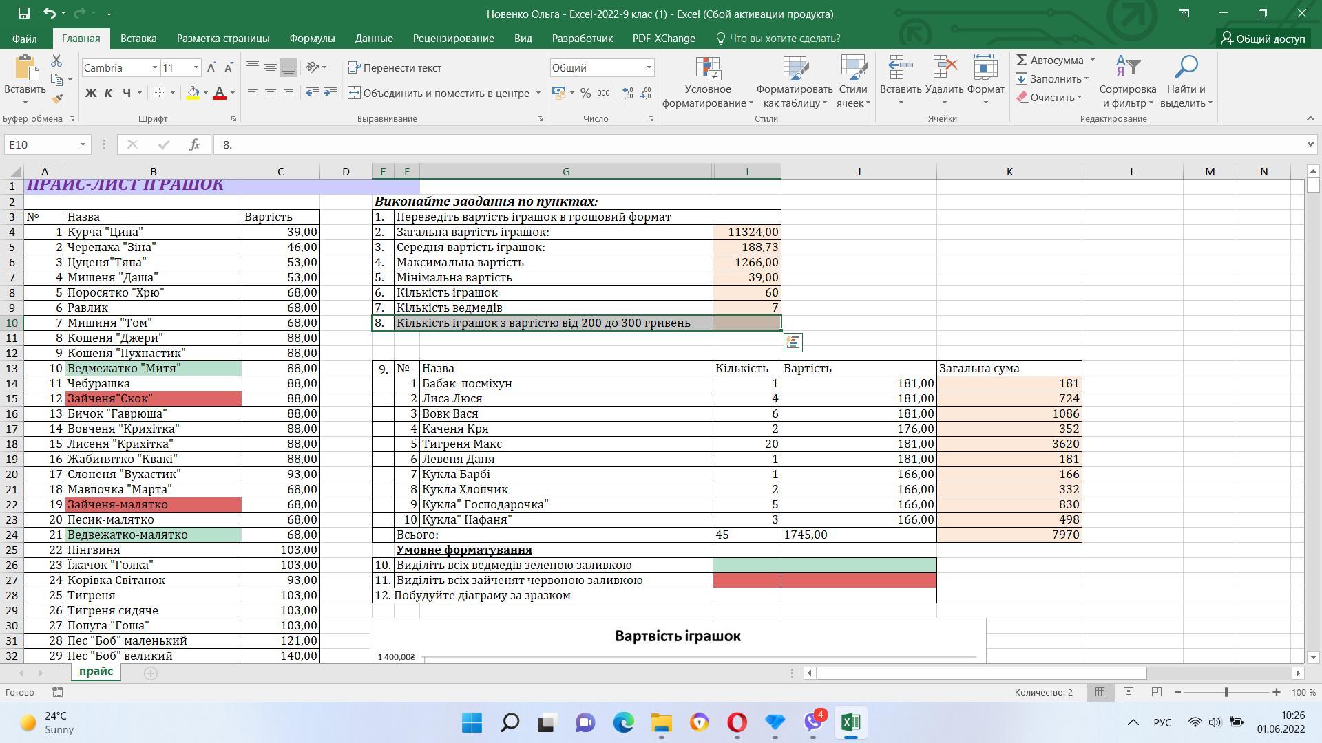 Какой формулой можно узнать Кількість іграшок з вартістю від 200 до 300