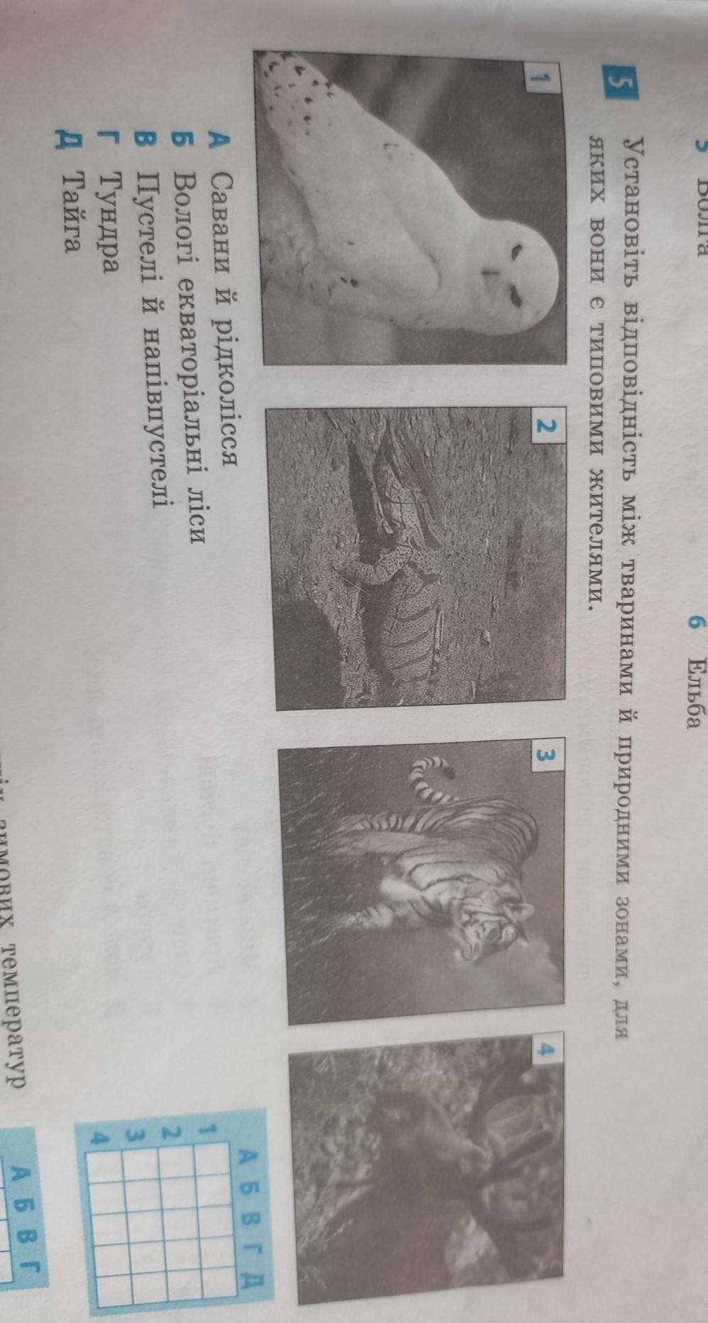 установіть відповідність між тваринами й природними зонами для яких вони є типовими жителями