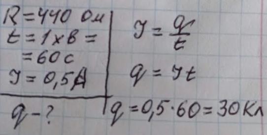 СРОЧНО!Який заряд проходить через електролампочку опором 440 Ом за 1 хв. при силі струму 0,5 А. уведіть відповідь у кулонах