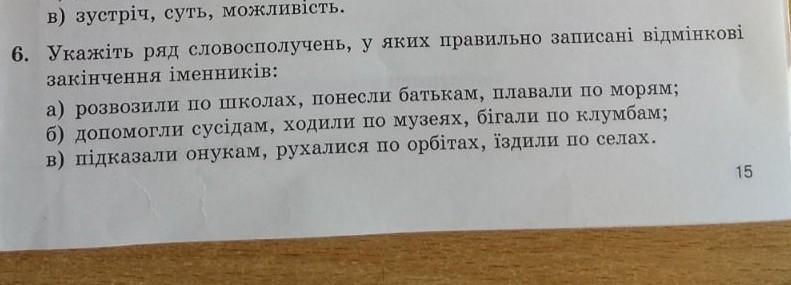 Укажіть ряд словосполучень, у яких правильно записанi вiдмiнкові закінчення іменників: