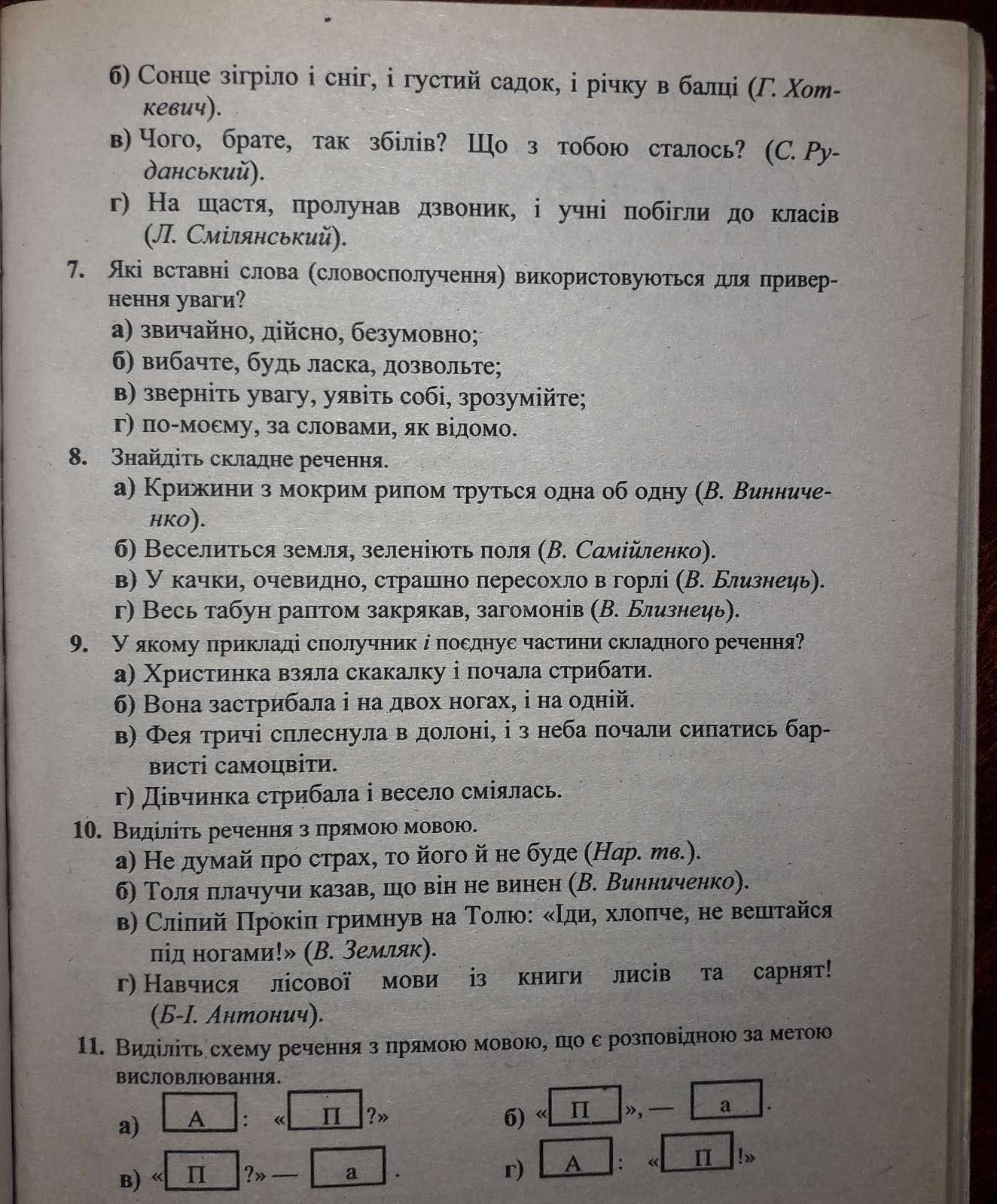 8. Б (складне речення — речення з двома і більше як граматичними основами. В цьому реченні граматичні основи — веселиться (присудок) земля(підмет), зеленіють (присудок) поля (підмет).