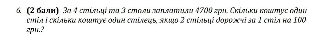 4 стільці + 4 столи = 4700