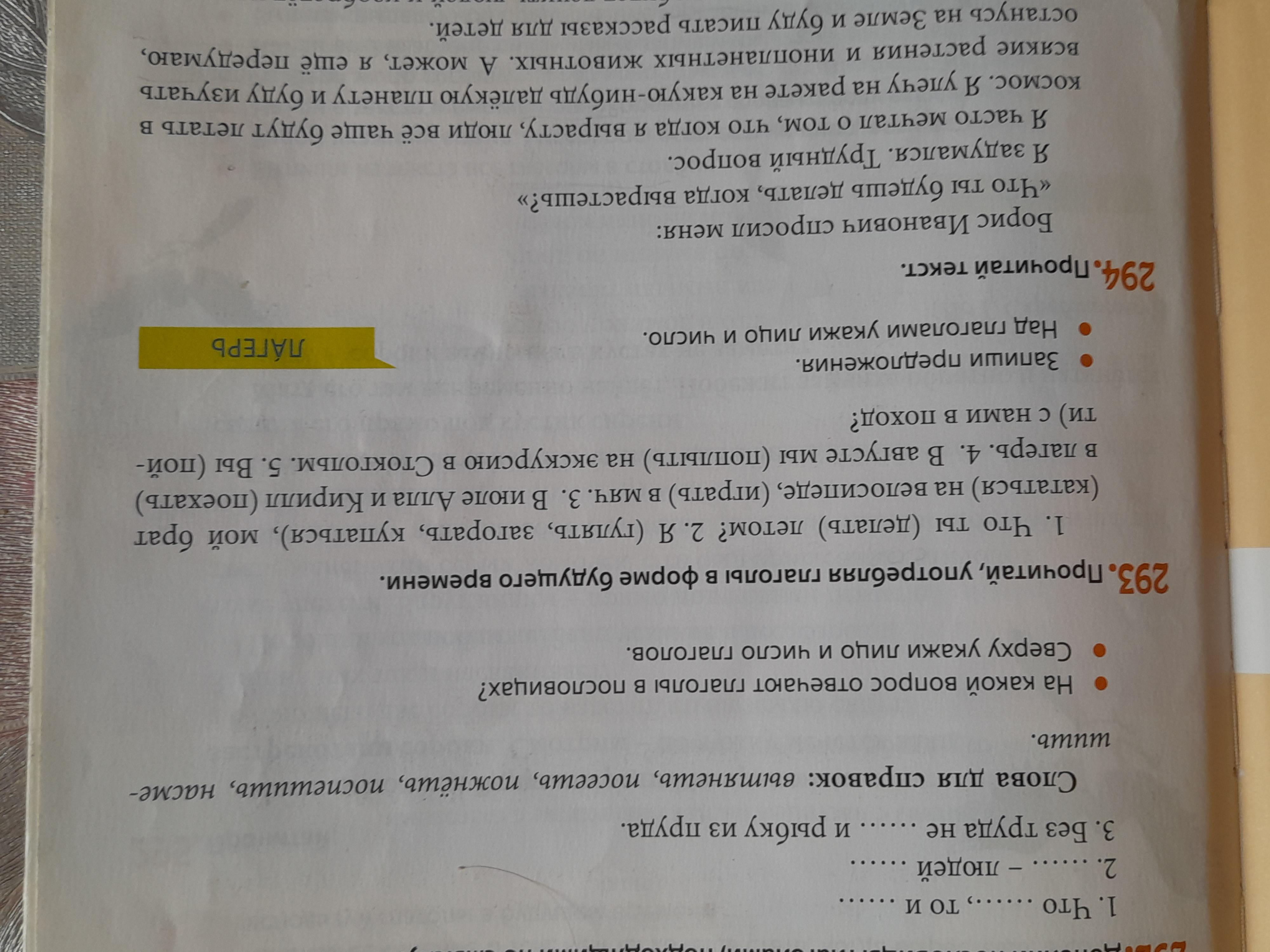 Прочитай,употребляя глаголы в форме будущего времени. Запиши предложения. Над глаголами укажи лицо и число. Упражнение 293.