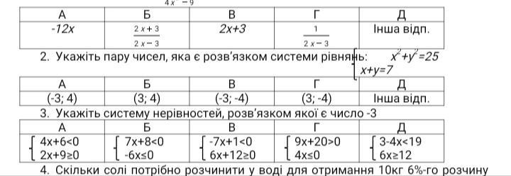 Ответ - А) 4•(-3)+6= -6 <0; 2•(-3)+9=3>0