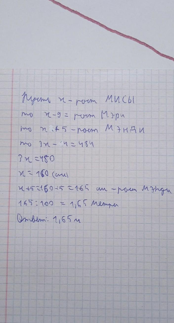 Мэри, Миса и Мэнди имеют общий рост 4,84 м. Мэри на 9 см