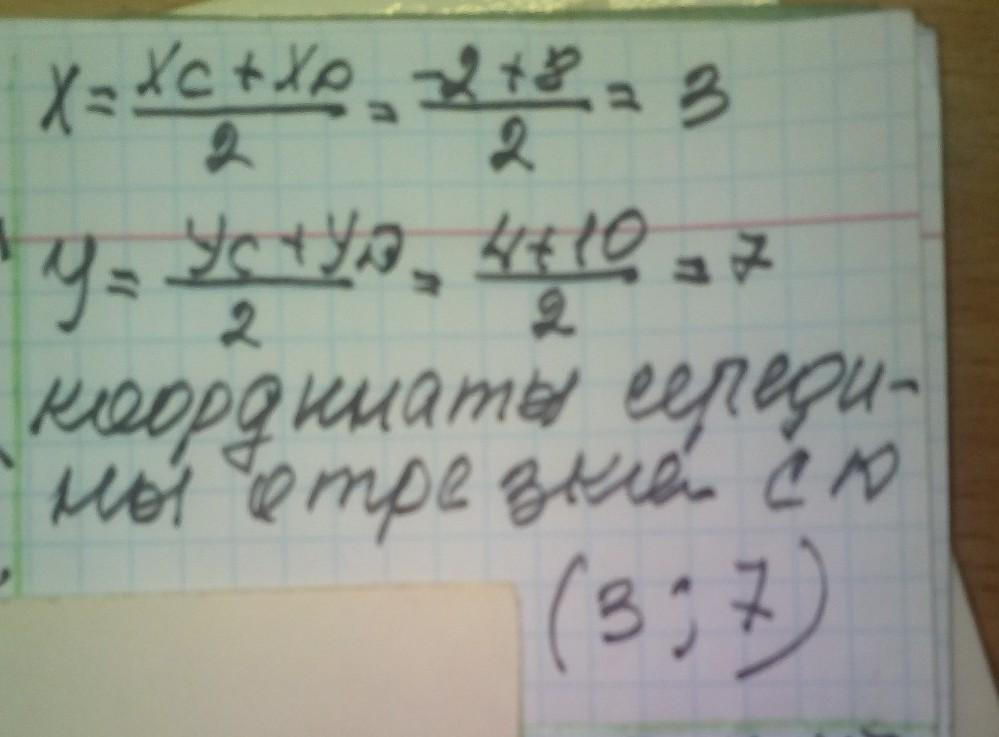 1. Знайдіть координати середини вiдрiвка CD , якщо C ( -2 ; 4 ) , D ( 8 ; 10 ) ..