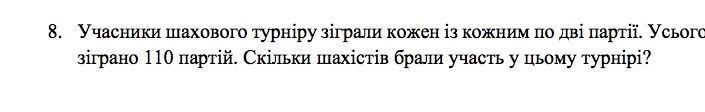 відповідь: у турнірі брало участь 55 шахістів
