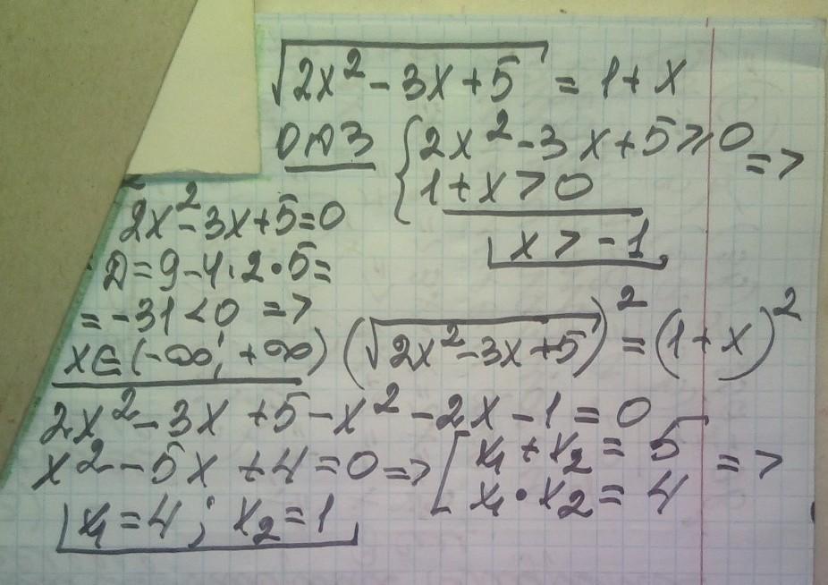 . розв'яжіть рівняння √12x²-3x+5= 1+x