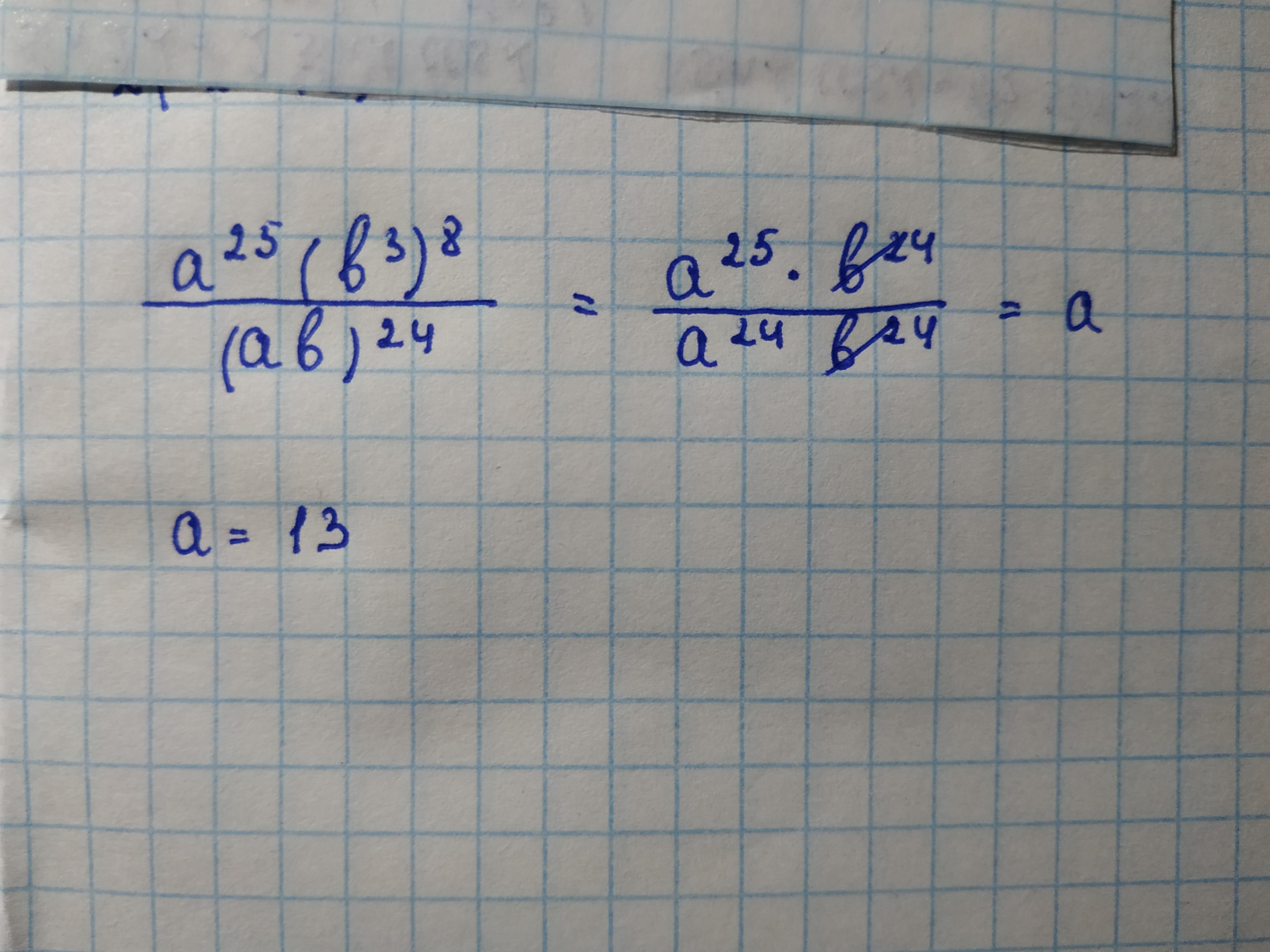 а²⁵(b³)⁸ / (ab)²⁴ = а²⁵b²⁴ / a²⁴b²⁴ = a