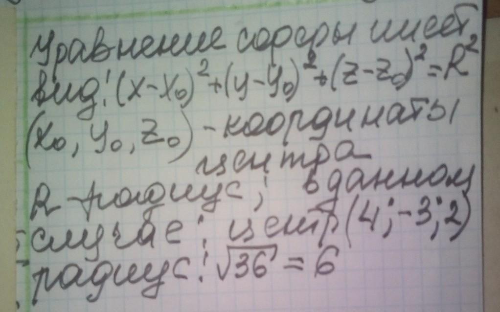 (x-4)^2+(y+3)^2+(z-2)^2=36