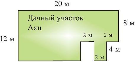 2) На дачном участке Аян разбили цветники со сторонами 4 × 2,8 и 3,6 × 1,5 м, а на оставшей площади посадили овощи. Какая площадь занята овощами?
