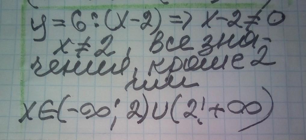 Знайдіть область визначення функції у = 6 : (х - 2)