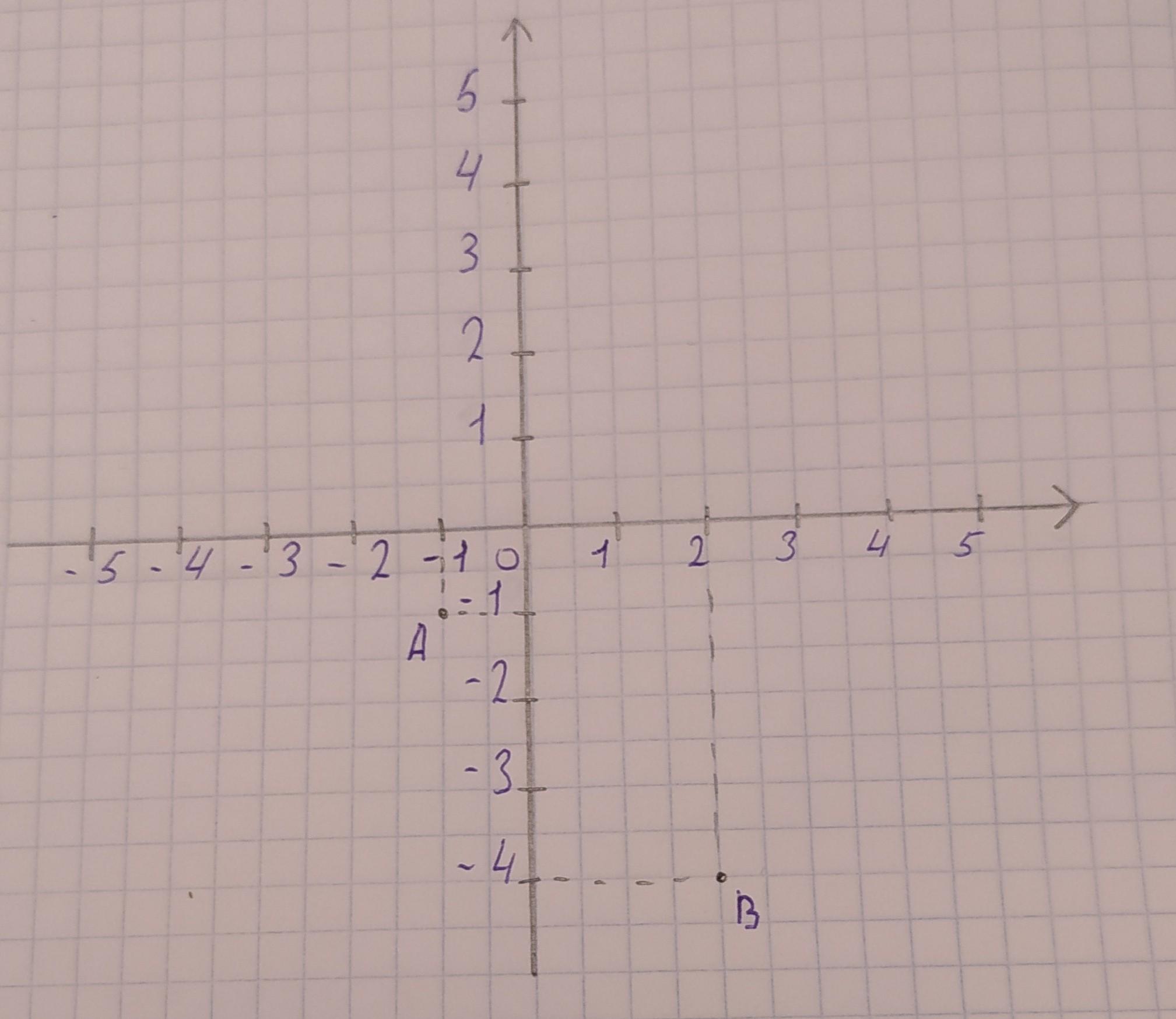 Позначте на координатній площині точки А ( -1; -1 ) і В ( 2; -4 ). Проведіть відрізок АВ. Знайдіть координатиточки перетину відрізка з віссю ординат.