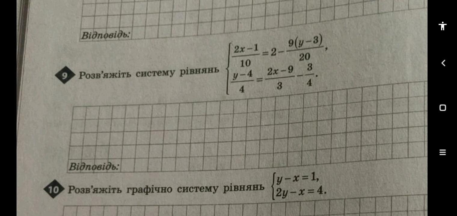{(2х-1)/10 = 2 - 9(у - 3)/20 | *20
