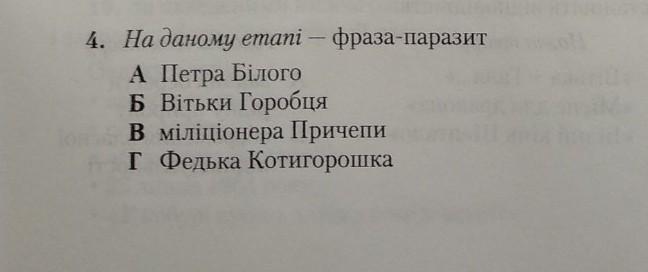 4. На даному етапі - фраза-паразит А Петра Білого Б Вітьки Горобця в міліціонера Причепи Г Федька Котигорошка