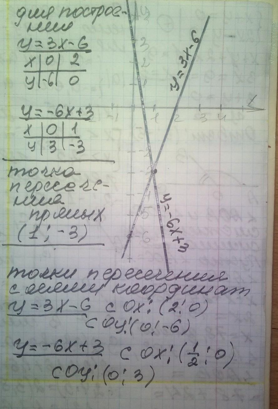 Побудуйте в одній системі координат графіки функцій:y= 3x-6; y= -6x+3