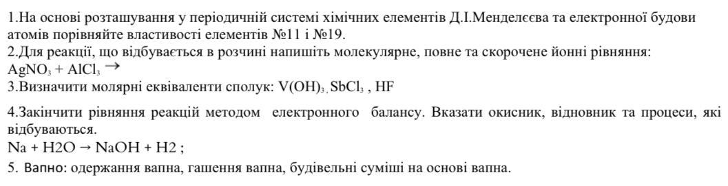 1.На основі розташування у періодичній системі хімічних елементів Д.І.Менделєєва та електронної будови атомів порівняйте властивості елементів No11 і No19.