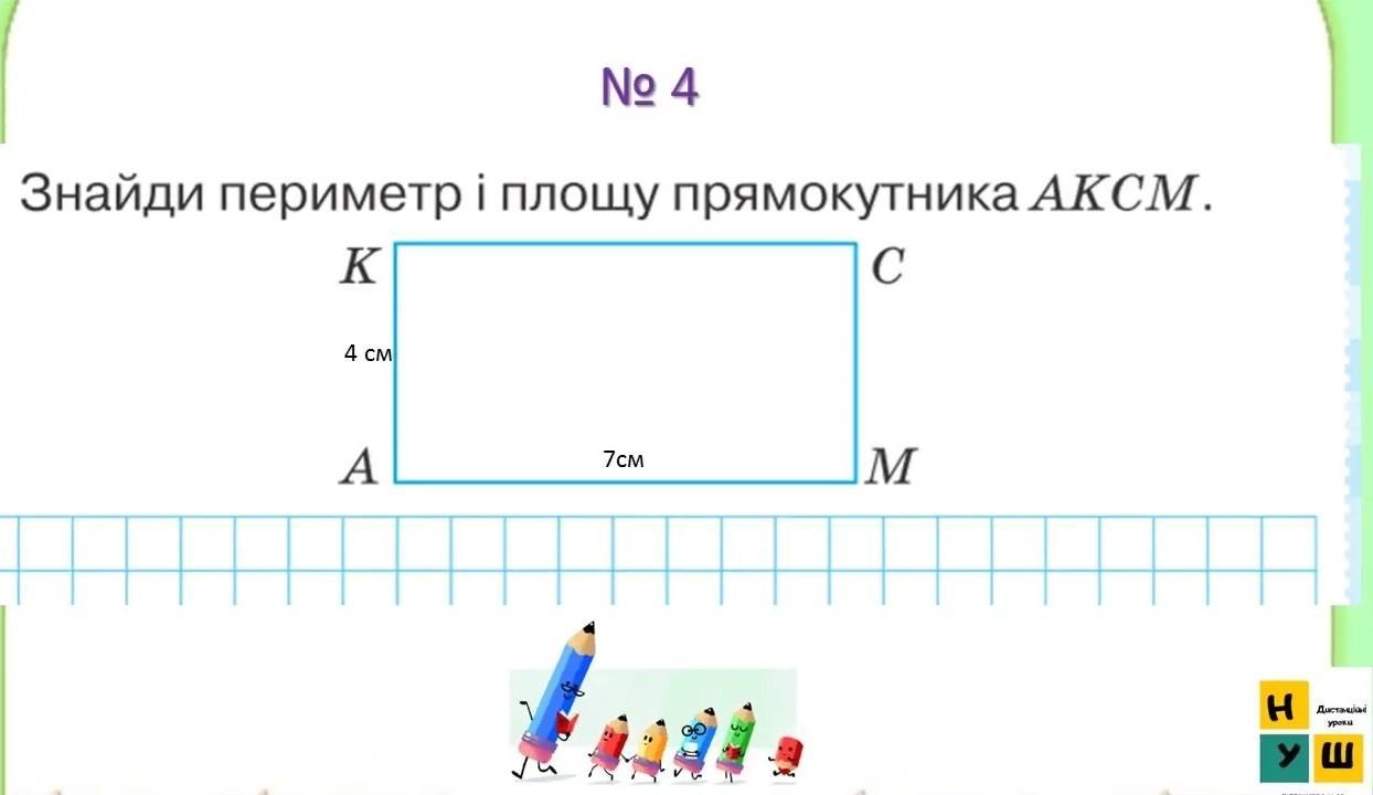 Знайди периметр і площу прямокутника АКСМ. K C 4 см 7см A M. поможіть до вечора здати