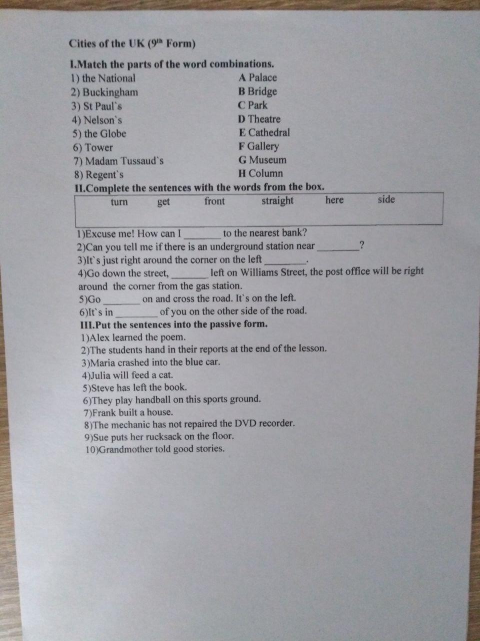 1.get 2.here 3.side 4.turn 5.straight 6.front