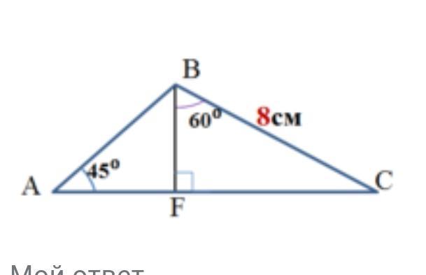 Дано трикутник АВС, ВF-його висота. За даними зображеними на рисунку знайти АF.(У відповідь запишіть лише числове значення)