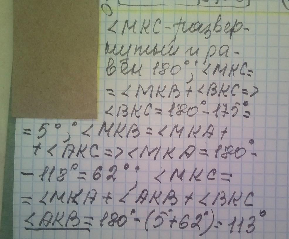 З вершини розгорнутого кута MKC (риc), проведено промені KA і KB так, що