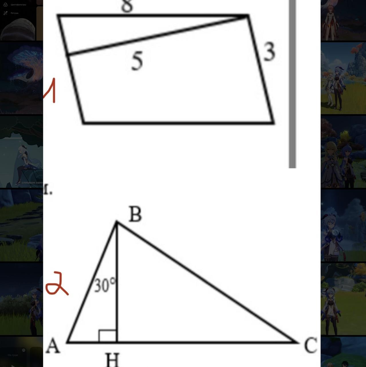 1. Знайдіть площу паралелограма сторони якого 3 см і 8 см, а висота 5 см.