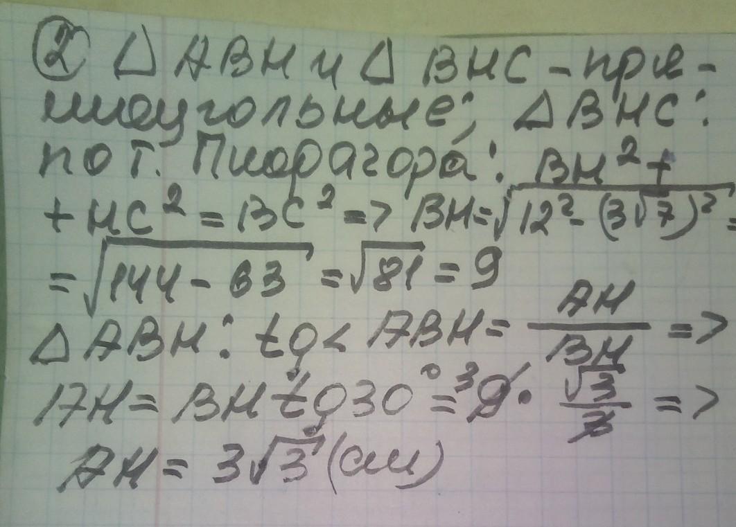 кут АВН= 30, ВС= 12 с, СН= 3 корінь 7 см.