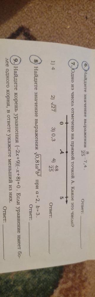2. 2 (мне кажеться так, ведь 27 под корнем - 3, а т.A на отрезке находится ближе к центру, соотвественно это не может быть 4; 0,3 или 48/25≈ 1,92);