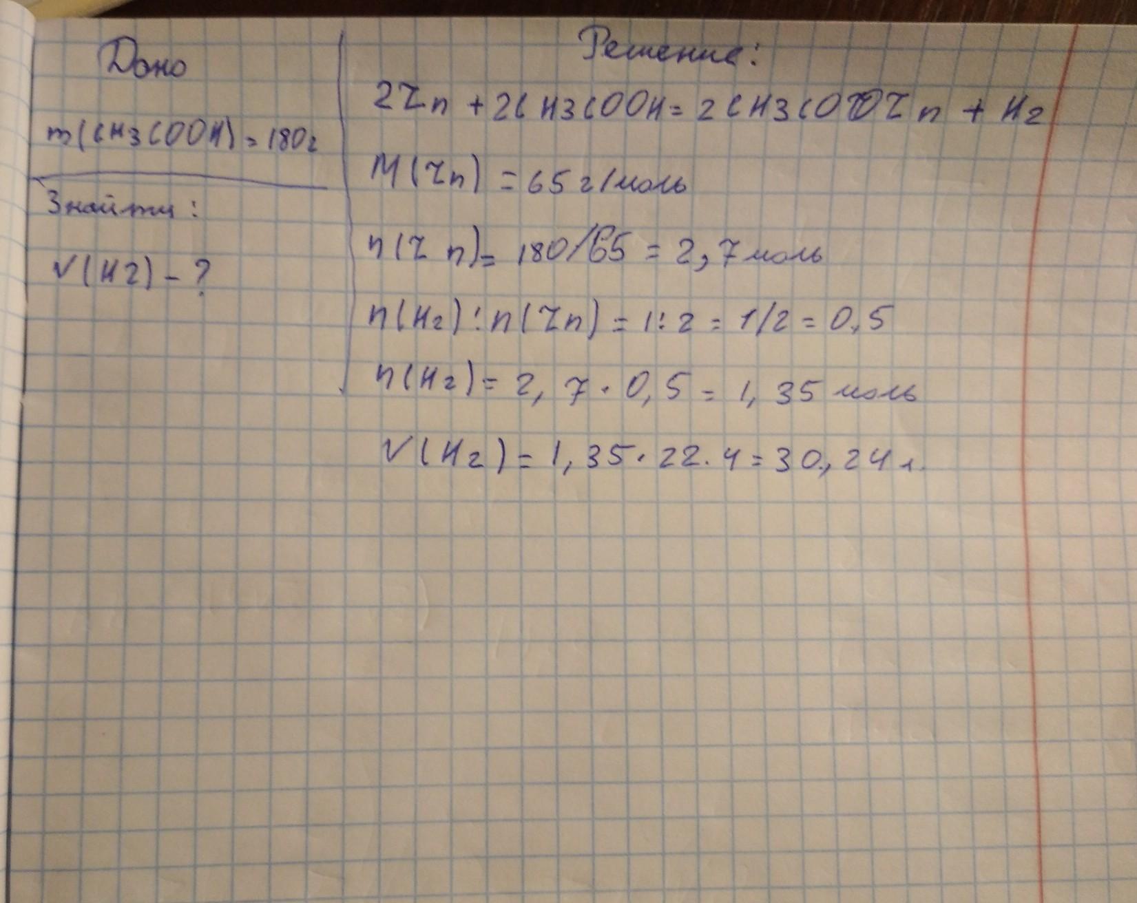 Обчисліть обєм водню (н.у.)який виділяється в наслідок етоновох кислоти масою 108г. Достатній кількості цинку