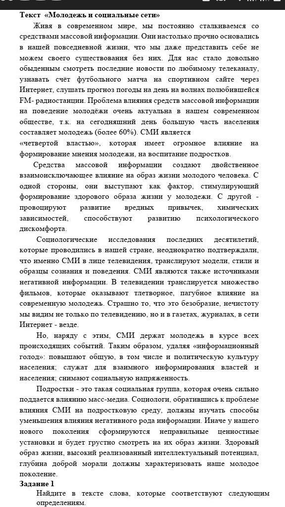 Найдите в тексте слова, которые соответствуют следующим определениям. Все слова находятся в первом абзаце.