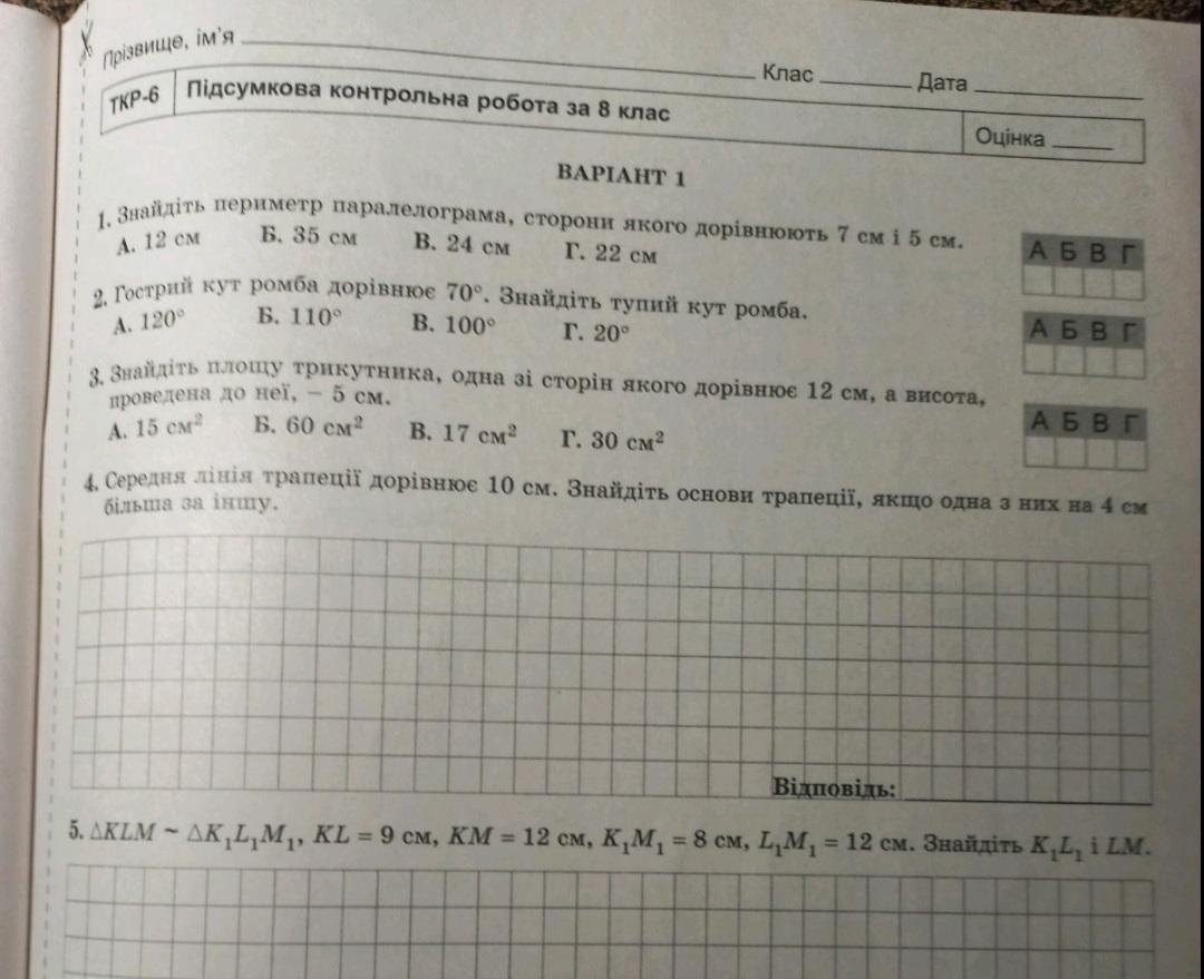 5 <КL = < K1L1 = 9 cm