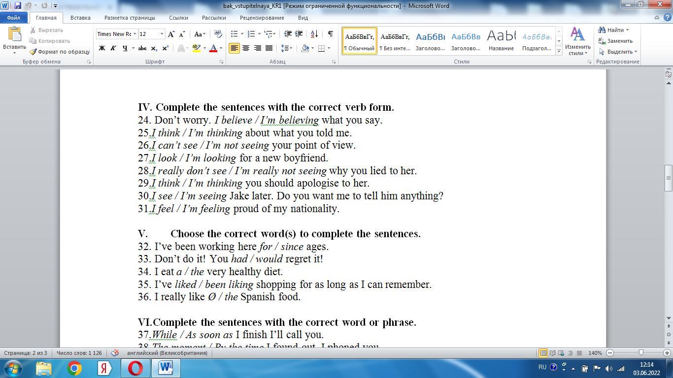 35 have liked (глагол состояния, не употребляется во временах группы continuous)