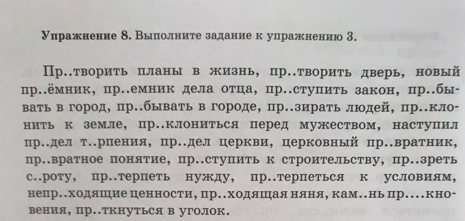 притворить окно,притвориться больным,преувеличенное мнение,искать пристанище,приманить птичку,камень преткновения,беспредметный разговор,приобщаться к традиции,прямолинейный,приусадебный участок,пострадать на ногу,пресекать попытки,приберечь деньги,пригородный район,предзнаменование,преподать урок,престижная должность,пребывать в городе,прядильный станок,короткая прибаутка,признаться в чувствах,отвергнуть притязания,представление,лишить привилегий,претендовать на пост,презирать врага,преступить закон,придать оттенок,предать мечту,предел мечтаний,предотвратить удар,приговор судьи,беспристрастный судья,призвание учителя,преувеличивать значение,приноравливаться к обстоятельствам. Упр.3 не вижу,какое задание в нем?
