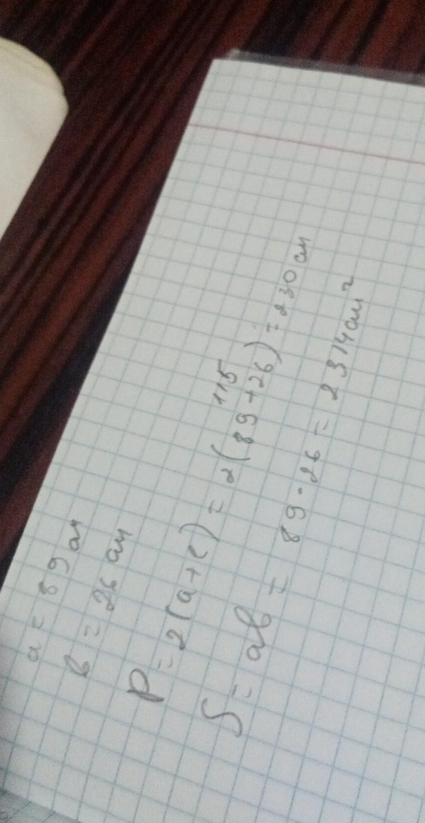 2) 89 * 26 = 2314 (см²) - площадь прямоугольника