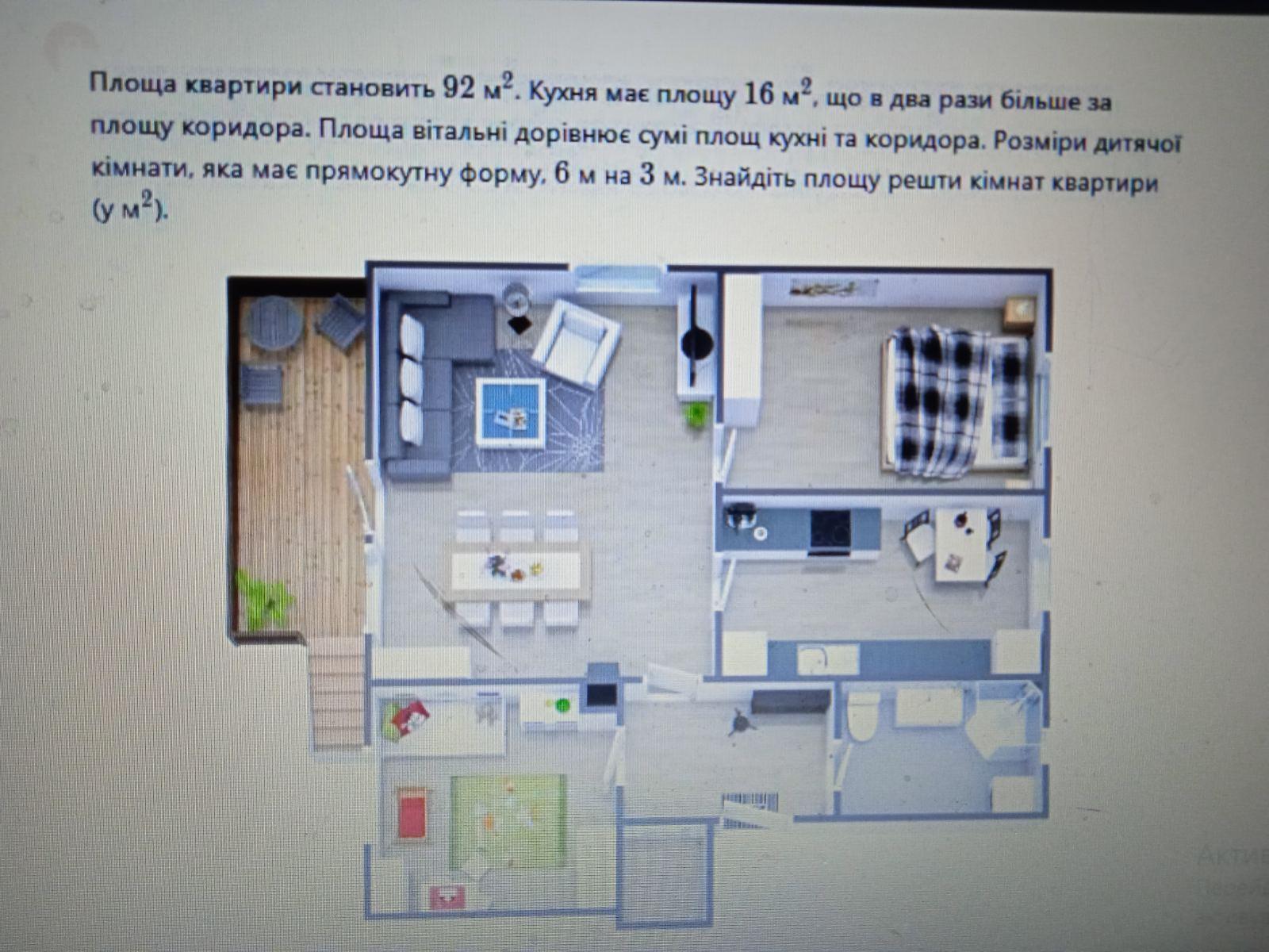 1) 16 : 2 = 8 (м²) - площадь коридора