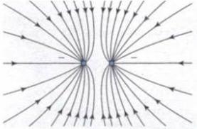 Зобразіть лінії напруженості поля створенного двома одинаковими негативними зарядами,які перебувають на деякій відстані один від одного