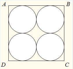 Квадрат АВСD имеет сторону АВ , равную длине двух диаметров вписанных кругов , то есть АВ=5+5=10 см .